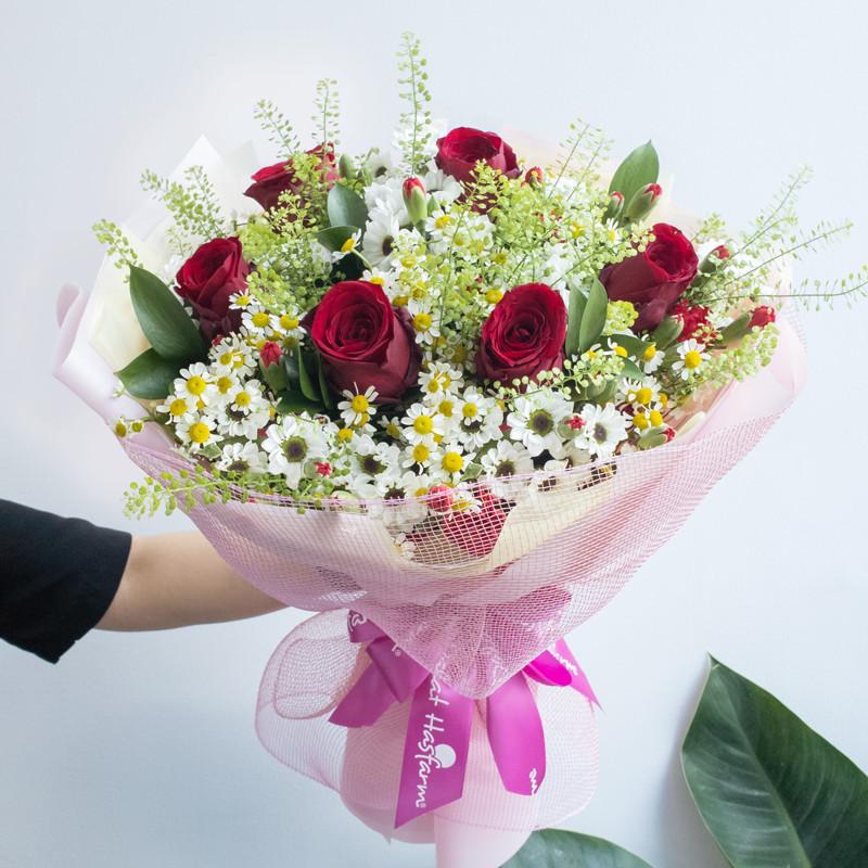 Sản phẩm được giao màu hoa ngẫu nhiên, một số loại hoa phụ có thể được thay thế bằng loại hoa khác tùy vào tình hình thực tế.