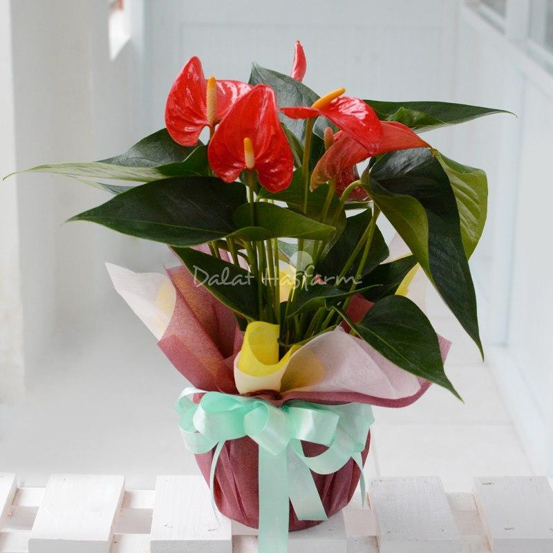 - Chậu Hoa Hồng Môn trung màu đỏ: 01 Chậu