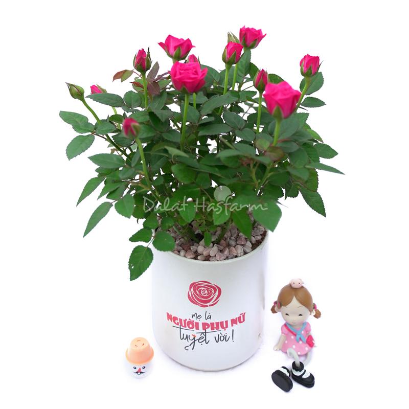 Sản phẩm bao gồm: Hoa Hồng chậu Chậu thông điệp Mẹ Là Người Phụ Nữ Tuyệt Vời Sỏi trang trí (BOU-PPA073)