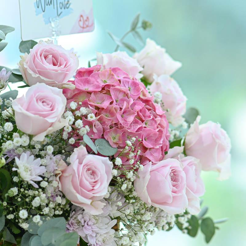 - + Hoa Cẩm Tú Cầu: 1 Cành (hồng đậm hoặc hồng nhạt)
